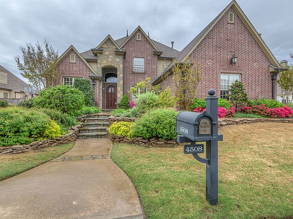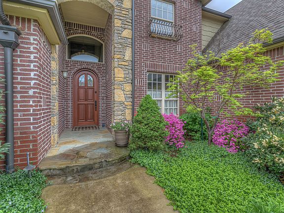 An immaculate house in a gated South Tulsa neighborhood! Beautiful custom cabinetry & granite in kitchen with dual pantries. Master suite & additional bed/bath on first floor. 2 beds, 2 baths, game room that could be used as a bedroom & family room located upstairs. Built-ins, surround sound, crown molding throughout. SAFE ROOM located inside! Two living areas upstairs. The front boasts a "stately" front entry arch & there is extensive rock work and landscape lighting by Kingdom Landscape and MGM. Tif sport Bermuda lawn! Enjoy the peaceful back patio and the large driveway with it's full size, built in basketball goal. This home is just beautiful & ready for new owners!