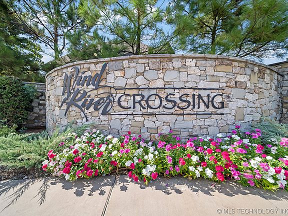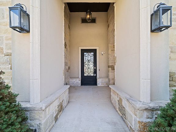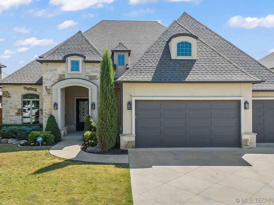 Fall in love with this beautiful 5 bed, 4.5 bath home in the prestigious Wind River Crossing! The home’s entryway boasts soaring coffered ceilings, intricate iron railing, and a private, wood-paneled office with custom trim and built-ins. The living room includes gorgeous wood floors, marble fireplace, back patio access, and floods of natural light and seamlessly flows into the kitchen. Designer light fixtures adorn a canvas of high end stainless steel appliances, an abundance of custom full-length cabinetry, a grand island with storage, spacious walk-in pantry, and dual toned marble + granite countertops. Off of the living room, you’ll find a large game room with a wet bar - perfect for hosting and entertaining guests! The master ensuite includes a walk-in tile shower, separate soaking tub, dual vanities, and an impressive walk-in closet with built-in dressers. Additional guest suite with a private bathroom and walk-in closet downstairs - each bedroom in the house has attached bath. Upstairs offers 3 sizeable beds and 2 baths (including 1 pullman bath), an oversized game room with 9ft ceilings and wood floored landing space with iron railing. Other incredible features include epoxy garage floors, a ton of storage, a large utility room with abundant cabinetry, radiant decking, 2 attic walkout storage spaces, and more. Instant equity with easy floored attic conversion upstairs (roughly 16x21). In the backyard, you’ll find a huge vaulted, covered back patio with a gas stub for a grill or outdoor kitchen. Located in Jenks Southeast School District, this stunning home offers both luxury and convenience - South Tulsa living at its finest!