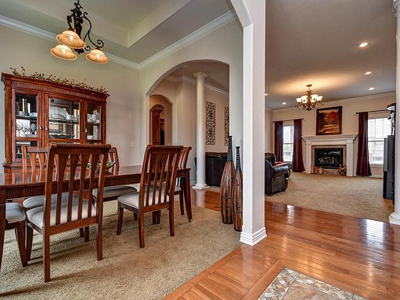 Wonderful all brick walk out basement home with a circle drive & side entry 3 car garage in the highly desired Lakes of Wild Horse. Custom built featuring arched doorways, high ceilings, alarm system, high efficient HVAC & crown molding. Great kitchen with granite counter tops. 3 bedrooms on the main level. Basement has a great wet bar, room for a pool table, theatre room with big screen projector, office and big bedroom with a bathroom for guests. . Walking distance to Hickory Hills School.