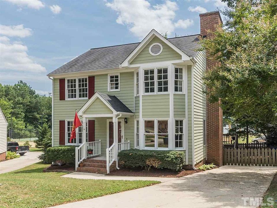Wonderful home, wooded, cul de sac lot, fenced rear yard w/ new HVAC system in 2015. Large deck for entertaining. SS appliances in eat-in kitchen, including dishwasher, gas range w/ hood & disposal. Formal dining room features crown molding & hair rail w/ laminate flooring. Family room has gas-log fireplace & bay window. Upstairs there are 3 bedrooms, including master suite w/ Cathedral ceiling, ceiling fan & bay window. Home backs to community pool/tennis courts & playground-accessible thru fence gate.