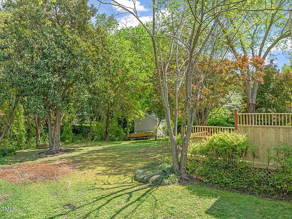 Welcome to this delightful 3-bedroom, two-story home that perfectly blends comfort, charm, and convenience. Nestled in a well established neighborhood, this well-maintained residence features beautiful hardwood floors throughout the main living areas, adding warmth and character to every room. Enjoy your morning coffee on the inviting front porch or unwind in the evenings on the spacious wood deck and custom brick paver patio—perfect for entertaining or simply relaxing outdoors. The home also includes a 1-car attached garage for added convenience and storage. Recent updates include a brand-new roof covering, giving peace of mind and added value. Located just minutes from downtown Raleigh, Midtown Raleigh as well as the RDU International Airport Research Triangle Park, Durham, and Chapel Hill with quick access to Interstate 540. This home offers an unbeatable location for commuters and anyone who enjoys easy access to the area's best dining, shopping, and employment centers. Don't miss this opportunity to own a charming home in one of the Triangle's most connected locations!