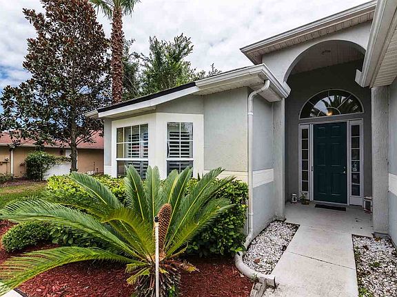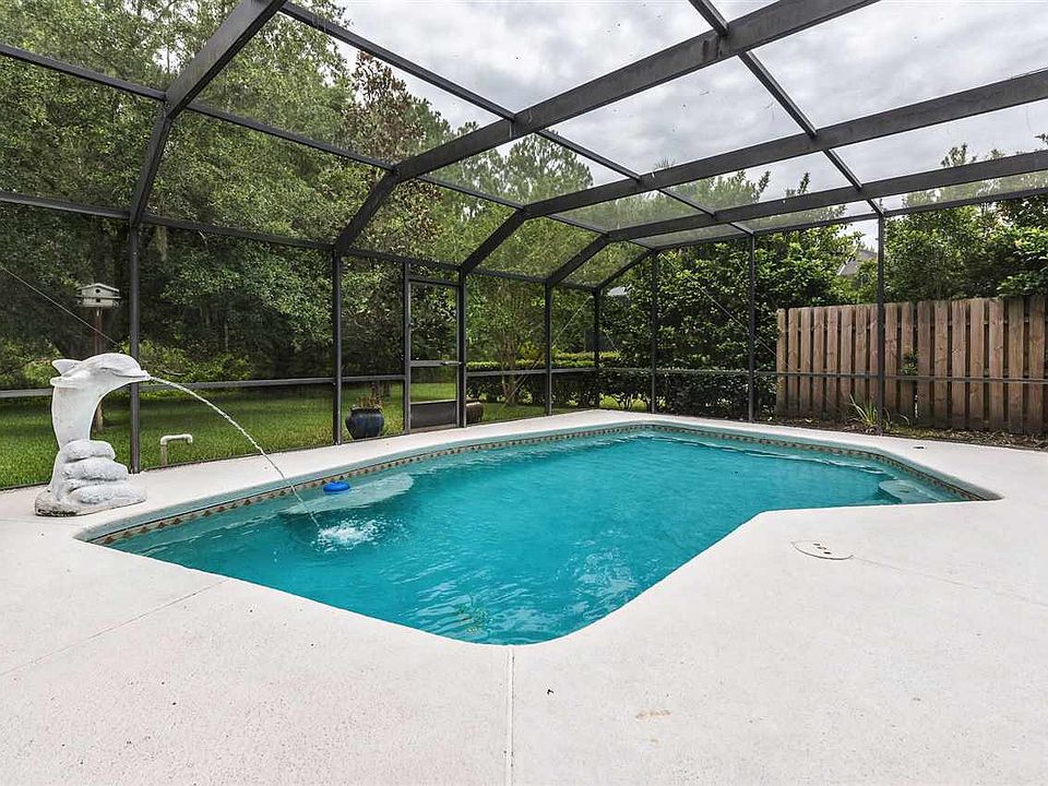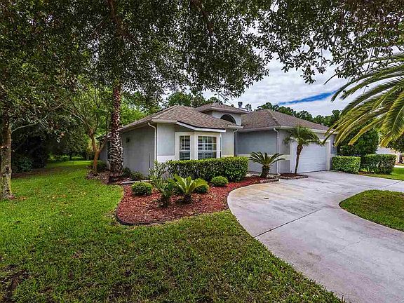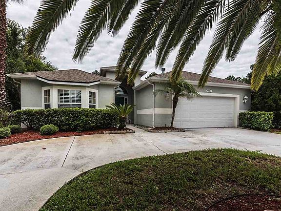 Concrete block pool home in a golf course community with low association fees and no CDD fees! This 3bd/2ba home offers 1,693 sq. ft of heated and cooled space, has a spacious kitchen with plenty of cabinetry, granite countertops, breakfast bar, and open to the dining room. There is a large living room with wood burning fireplace and triple sliders leading to the covered lanai, refreshing pool, and separate spa.