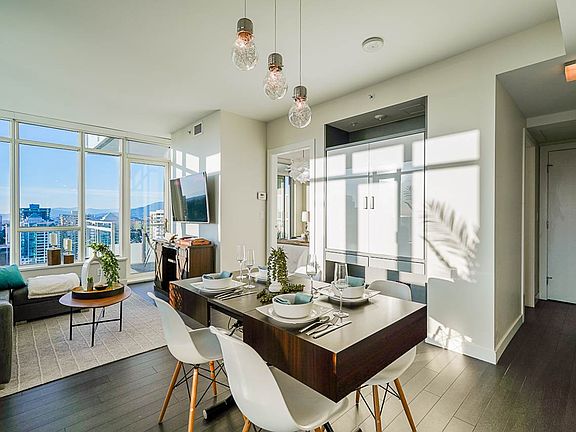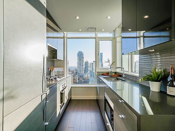 Immaculate 1 bedroom home in the Bosa built Sovereign building located in the very heart of Metrotown. The corner unit home features breathtaking mountain, water, & city views from almost every room. This well appointed home features a built-in desk space, huge windows for lots of light, and an well layed out kitchen space. The cheater ensuite bathroom allows for practical access when guests are over and the patio may be accessed from the living room as well as the bedroom. Convenience is at the forefront of this location with restaurants and shops at Metropolis at Metrotown mall, Shoppers Drug Mart, & Metro Town Station just steps away. Not to mention, you're also close to nature with Central Park just minutes away by foot. Built in 2015, there is still 5 years remaining on its warranty.
