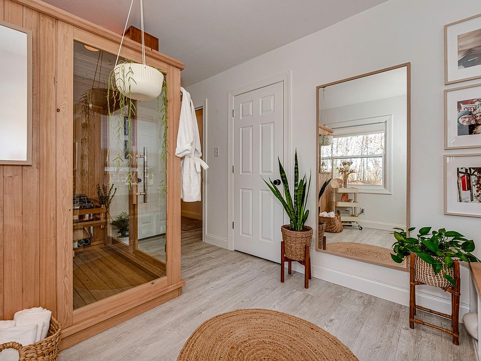 Kick back and relax in this aesthetic Scandinavian space highlighting an authentic 4 person Finnish sauna and a Nordic cast iron gel-fuel fireplace that's clean-burning and smokeless. A French-styled bedroom suite, a black bedroom suite, an office with a Murphy bed, open floor plan home lush with plants, a backyard with deck and brick oven, and a hanging chair on the front porch behind privacy slats. The house is located on a quiet cul-de-sac and there is a driveway for parking two vehicles and/or space on the street in front of the house. Conveniently escape the Southern humid heat by staying minutes to Uptown nestled in a quiet cul-de-sac, under a rare mature tree canopy. Proximity to international restaurants, nature preserve, indie movie theater, city history museum, and a neighborhood farmer's market. Sleep well in 3 bedrooms; the Blackout suite, French suite, and Murphy bed Study. The fourth bedroom has been converted into a wellness room with sauna and workout gear. 8 minute drive to Sugar Creek light rail station with parking deck. 10 minute walk to bus stop at Abbeydale/Sharon Amity. 20 minute walk to CityLynx Gold Line future stop at Winterfield Place (ready in 2024). Located in a neighborhood that's known for international food and only 19 minutes to Uptown/Center City. Renter is responsible for gas, electric, water. No smoking permitted inside.