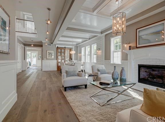 Superior quality new construction in popular close to all Sherman Oaks neighborhood. Exceptional attention to detail throughout including Smart Home capabilities, I-PAD docking station, Edison lighting and custom woodwork and moldings. The gracious light filled floor plan offers a downstairs suite perfect for home office or guest room & direct access garage with adjacent mud room. An open flowing first level including formal living room, dining room and truly stunning Calcutta marble accented kitchen with professional grade stainless appliances, center island breakfast bar & butler's pantry w adjacent walk in pantry. THe kitchen has a separate breakfast area and is open to the family/media room w/ fireplace and features accordion glass doors to rear patio and private yard with pool and waterfall spa. The upstairs level offers a gallery space open hallway and 3 additional bedroom suites plus a grand master suite w vaulted ceiling, fireplace, bath w free standing soaking tub and a large fully outfitted walk in closet. A true retreat yet minutes from the finest shops and restaurants. An exceptional value among the new construction offerings today.