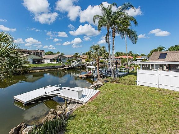Salt water canal-no bridges-Direct Gulf access ! Newer doors with new hardware (lever handles)Hurricane garage door with opener Hurricane rated entrance door Hurricane/Impact with Low-E glass windows and sliders on the house New light fixtures throughout including exterior fixtures All ceilings have been redone -- the popcorn removed in bedrooms, hall and kitchen and bead board ceiling with 10-year warranty in living area All interior walls have been retextured and paintedNew electrical switches and receptaclesNew outside lightingNew insulated siding with Roof is approximately 13 years old with 25-year shingles 3-ton Heat Pump is approximately 10 years. Grade D granite countertops e New Samsung stainless steel appliances e Under mount stainless steel sink with garbage disposer and new faucet Microwave exhaust fan is vented outside through the roof Marble e Hurricane/Impact with Low-E glass windows and sliders New ceilings New vertical blinds New ceiling fans in both bedrooms Master Bathroom e New vanity, faucets and commode e Travertine floor e Travertine shower with tempered glass sliding door 2(tm) Bathroom e New vanity and commode e New lighting e Ceramic tile surround in tub/shower combination Four Season Lanai e New self-locking windows, 8 x 16 floating boat dock e Could handle 28' boat (plus/minus) e Treated lumber is wrapped with cross-hatch vinyl decking with a 40-year life expectancy on the vinyl!Extra floor tile, carpet,