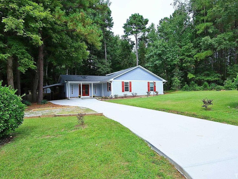 Beautifully updated ranch home on a large half acre independent lot. No HOA. New roof, new screened porch, new wood burning stove, new drive way. Large updated kitchen with island, granite, pantry with sliders. Master bath has large tiled walk-in shower. Double vanity in both full bathrooms. Large secondary bed rooms. Leaded glass front door. Covered front porch. Deck for grilling. Shed in back for storage. Fence. Wooded view. Close to I-540 access. So convenient to HWY. Freshly Painted home with new appliances. Plenty of space. Available from 3/16. Renter responsible for water(aqua water utility co), electric ( duke energy), trash removal (GFL co), lawn maintenance. Landlord pays for septic tank pumping service when needed. $100 standard application fee. One month refundable security deposit along with first month rent. Non refundable pet fee for each pet.
