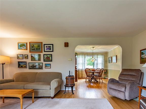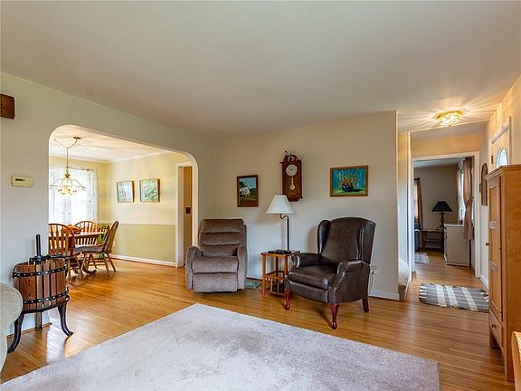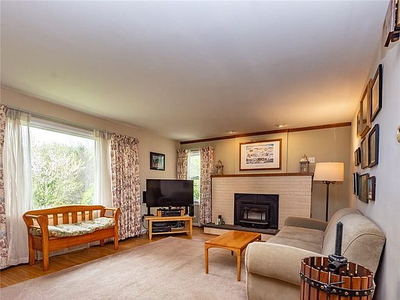 Awesome opportunity! Charming Cape Cod on nearly 3 acre nicely treed lot! Mechanic or contractors dream with a two car heated attached garage plus a two car heated detached garage/shop. Lovingly cared for in and out! Updated eat in kitchen with stainless steel appliances included. The dinette leads to a private rear patio. Fireplaced Living Room, cozy den/family room. One bedroom down and 3 up. Both full baths are nicely updated. Formal dining room. Huge basement Rec Rm with new wall to wall carpeting and gas fireplace! Large well lit hobby area and laundry area. Beautiful park like yard to enjoy. A rarely available opportunity great for mechanic or contractor who needs lots of extra storage space. Fairport electric