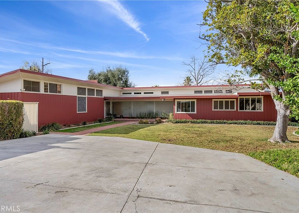 WOOD STREETS/MOUNT RUBIDOUX- One of very few residential projects by Architect Bolton Moise designed for close friends Dr. and Mrs. Hobart M. Kelly; Harvard educated Moise is better known for his striking mid-century Public and Educational Building Designs most still in use in and around the city of Riverside and the Southern California Region. Developed to take advantage of this unique elevated site with its expansive views of Mount Rubidoux and Tequesquite Canyon and in recent years Ryan Bonaminio Park, this sprawling Mid-Century estate is presented to the market in near original condition together with the original hand drawn blue-prints and scale architectural model. The warm wood paneled entryway yields to the central hall highlighted by custom corrugated glass walls which serves as the spine of this home connecting all of its splendid living spaces. The formal living and dining rooms are afforded dramatic views of the classic rectangular Paddock Swimming Pool through the walls of glass doors; The separate family room is enhanced by a vaulted ceiling, genuine masonry fireplace and views of the park and Mount Rubidoux. The privacy of the bedrooms is assured by the thoughtful design clustering the secondary bedrooms around their collective bath as well as a common workspace and separating the primary suite and its adjacent study. Attention to detail in this home is immediately apparent, though to mention a few are the vast clerestory windows flooding the interior with natural light and the book-matched hardwood cabinetry preserved and as beautiful and relevant today as the day the home was built! A covered breezeway shelters access to the 2-car garage and separate workshop containing ample storage. The oversized lot features numerous varieties of ornamental and fruit-bearing trees including Citrus, stone Fruits and Fig; The separately fenced side yard is accessible from Larchwood Place by a gate and would be ideal for the construction of an Accessory Dwelling Unit (ADU) or additional garage or RV parking or potentially split and sold as a separate buildable lot. Upgrades to improve efficiency include upgraded HVAC and the replacement of many of the windows and sliding glass doors including all sun exposed windows to the south and west have been replaced with modern energy efficient dual glazed glass. A true time-capsule awaiting the next generation to enjoy countless Mount Rubidoux Fourth of July Fireworks Shows from your own private estate!