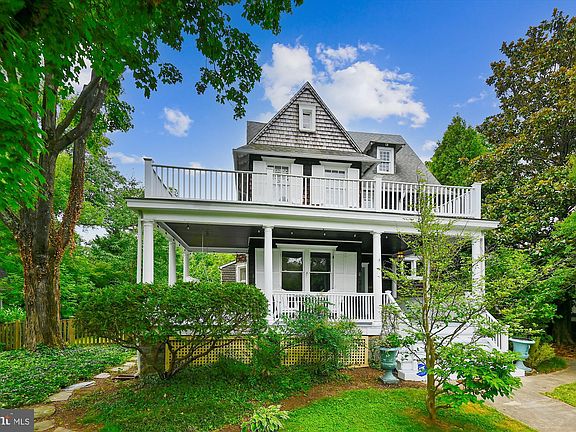 "There are two things that make a home timeless: a sense of history and a piece of the future" Charlotte Moss. This handsome, cedar shake, covered porch front home is located in Roland Park, which is listed on the National Register of Historice Places....noted as one America's earliest and best designed garden communities. A classic home.....with its incredible style and detail and tasteful updates....including an expansive kitchen with a commercial Viking stove and hood, stainless appliances, wet bar area, pantry and adjoining mud room. Main floor also includes an entry foyer that opens to an impressive, bay-windowed living room, formal dining room and library with custom bookcases.......as well as a large, bright family room off the kitchen that leads to a magnificient, covered back porch! First floor powder room features a hand-painted mural of Roland Park homes. En suite primary bedroom with bay windows and large bathroom with separate shower and jetted tub. Two separate bedrooms on the 2nd level, with a full bath and laundry area. The third level has three additional bedrooms and a full bathroom. Unfinished basement has ample room for storage. Fenced rear yard with speciman plantings, raised garden beds, and a 2-car garage and parking pad! Conveniently located close to all the amazing shops and restaurants Roland Park has to offer! Solar panels on garage and rear section of house are owned.