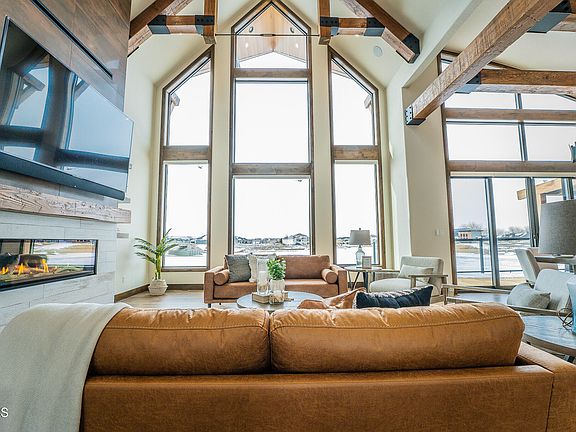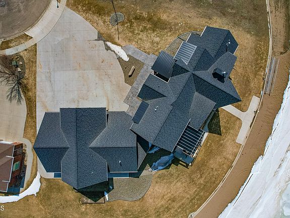 Built in 2020, this house has it all. Not only is this incredible home beautiful, it is filled with custom details you have to see to believe. The mainfloor great room faces over 300 ft of water front, with floor to ceiling windows that create the luxury feel you have been looking for. There are custom sourced douglas fir beams throughout the home that give warmth to the space that are paired with modern features that give this house a versitile style to suit your needs. The kitchen and dining room is open concept with a full butlers pantry to allow the space to be the true heart of the home. The primary bedroom feels cozy with a floor to ceiling gas fireplace that flows into the primary bathroom. The entire primary bathroom has all the features you could imagine, tile shower, soaker tub, and a custom closet with its own washer and dryer. Upstairs contiunes with a reading nook, a home gym that has 180 degree views of the Missouri River, a large bedroom, and bathroom. Downstairs contains 4 large bedrooms, 2 bathrooms, and a family area with walkout access to the beach. On your way from the basement, you will find a hidden gun room that double as a safe room that is completely enclosed with concrete. A house like this isn't complete without entertainment space. Weather you want to be outside enjoying the sunset on the sprawling deck with the outdoor kitchen, or inside in the bonus space that has a drop down movie theater screen, wetbar and a half bath, you have options to entertain all year round. The garage is over 2000sq feet with storage accomodate all your needs. This house is truly one of a kind with curb appeal created by rock that was hauled in from the Black Hills of South Dakota.
