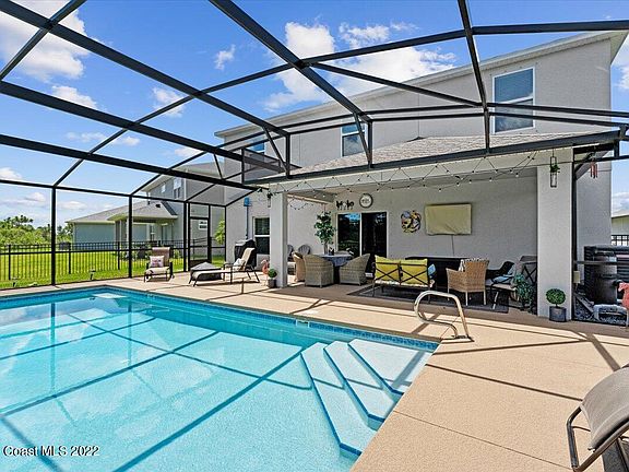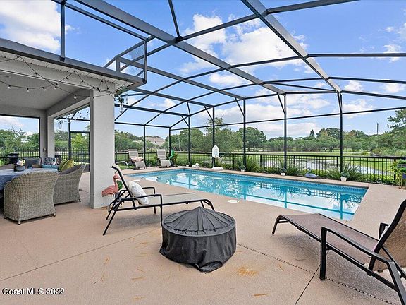 This gorgeous 5 bedroom, 3.5 bath, Eber Cove, 2-story home sits on a lot along a beautiful lake! One of West Melbourne's nicest, and most spacious homes, this home has a new screened in, heated, pool. With a spacious formal dining room situated next to an upgraded kitchen, overlooking a huge family room. There are granite counter tops throughout the house. The showers have decorative tile along with upgraded floors throughout most of the house. The first floor master suite has a walk-in closet and an upgraded master bath, with separate tub and shower. the bedrooms upstairs have 2 full baths, and sit next to a Game Room. The upstairs also has a spacious laundry room. This home is located in a neighborhood with mostly new homes!