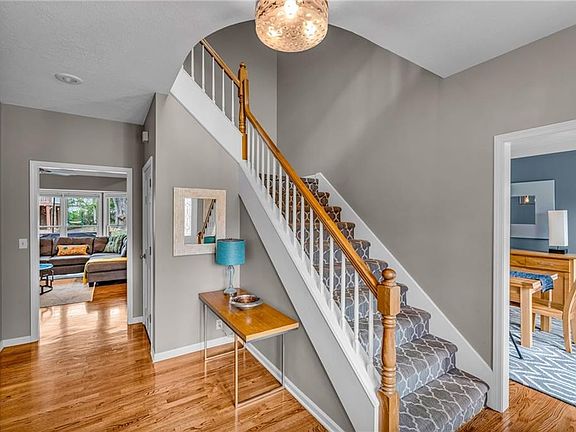 Beautiful home nestled in a quiet cul-de-sac just 500 feet from a scenic nature trail! Step inside to find refinished hardwood floors, a stunning stone fireplace in the living room, and a bay window that floods the space with natural light. The formal dining room, kitchen with stainless appliances, island, breakfast bar, and a bright sunroom perfect for your growing plant collection create an inviting space for everyday living and entertaining. Half bath, laundry and mudroom off garage with a convenient first-floor office that offers a quiet workspace. Upstairs, the spacious primary suite includes a sitting room and a fully remodeled bath, with potential to expand into the unfinished attic space. Three more bedrooms – one a secondary suite, and two bedrooms share a jack-and-jill bathroom. The walk-out basement is an entertainer's dream with a family room, rec room with wet bar, additional bathroom, large storage room, and more! Outside, enjoy a large backyard featuring a peaceful water feature, deck, charming lamp posts, and even a tree house! Don’t miss out on this one-of-a-kind home! Carpeting in office and upstairs will be replaced prior to closing.
