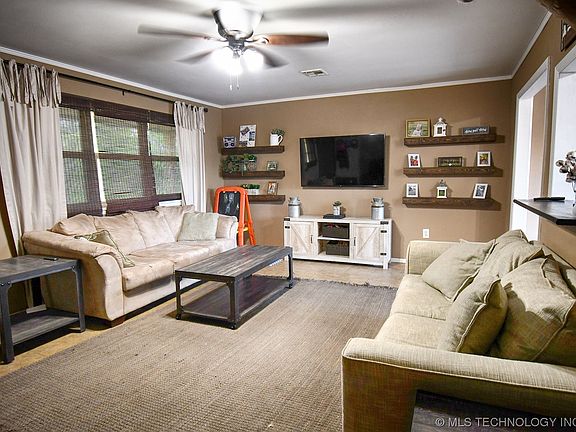 Open Country Living! A well kept 4 Bed 1 and 1/2 Bath home is located in between Gore, Vian, and Lake Tenkiller. Home was completely remodeled 9 years ago and has been upgraded with a brand-new half bath and breakfast bar. Home has fresh new paint, new septic system, tile floors, carpet in bedrooms, metal roof. Great back deck that overlooks a 2 acre yard. 256 sq ft storage shed. Come enjoy the awesome open scenery! Close to the Lower Illinois and Lake Tenkiller!