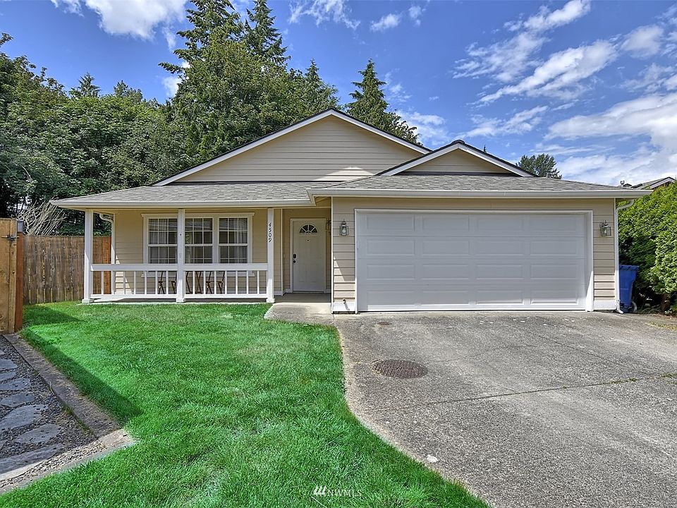 3 bedroom rambler on a large lot in a quiet cul-de-sac! The living room and kitchen have a very open layout with vaulted ceilings and large windows. Stainless steel appliances and vinyl plank flooring in the kitchen with a sliding glass door to the backyard. Primary bedroom includes a full bathroom and walk-in closet. Spacious backyard that would be great for entertaining! Includes a deck, play set, and backs up to a greenbelt. Large side gate to the backyard. Also includes a two car garage, forced air, and natural gas. Roof was replaced in 2019. No stairs to access the home. Great location in Arlington near I5, shopping, and schools!