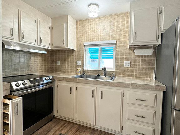 This adorable home is a must see. The seller has remodeled this home and made is look so cute. So many upgrades new water heater, stainless refrigerator, electric stove, stainless hood, paint, tile kitchen, plank wood flooring through out, new closet mirror doors ,trick hidden hiding drawer, wooden blinds, new light fixtures, and Bluetooth speaker in the bathroom light. Many more just come see for yourself. The front of the home is gated for your little furry friends. Spacious open floor plan ready for someone to come add their style and enjoy. Access to a grate pool with zero maintenance from you required. Also enjoy the clubhouse as part of the amenities for the park.