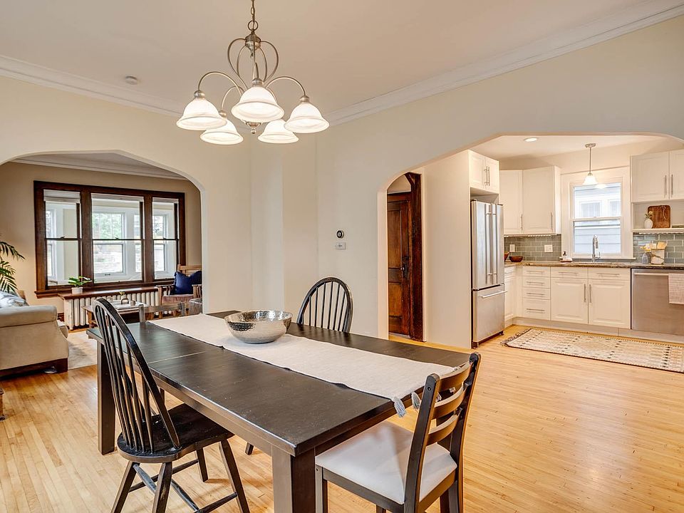 Situated in the coveted East Harriet neighborhood of Southwest Minneapolis, this Craftsman-style home offers old world charm with modern upgrades. On the inside, original details include hardwood floors, soft archways, wood trim, a built-in bookcase, and a dining room buffet. Recent upgrades feature a recently constructed kitchen open to the dining room with newer appliances, backsplash, sink, faucet, countertops, lighting, and a breakfast bar/mudroom. Upstairs, find an updated full bathroom with built-in cabinet and three bedrooms, each with spacious closets. Outside, enjoy the annual gardens, elevated vegetable beds, and relax in the three-season porch or backyard deck backdropped by a botanical privacy trellis. The garage offers plenty of space for two cars and additional storage. This home is a short distance from neighborhood favorites including Brasa Rotisserie, Alma Provisions (opening soon), Khaluna, Patisserie 46, Lake Harriet, and Lyndale Park (aka Lake Harriet Rose Garden). 2022-08-22