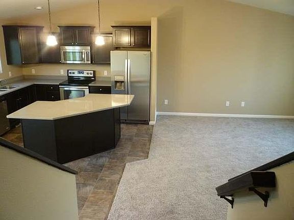 Located on the edge of North Mandan, this MOVE IN READY multi-level home has it all! With around 1,100 finished sqft, 2 bedrooms, 2 baths, 3 stall garage, and an unfinished basement. The main level showcases a vaulted ceiling that opens up the living, kitchen and dining areas where you can enjoy entertaining your guests with CUSTOM MADE staggered height cabinets, quartz countertops, large island,and Whirlpool stainless steel appliances! The upper level includes a guest bedroom, full bathroom, and your master suite with an over-sized walk-in closet and an on-suite master bath. The unfinished 1,070 sq ft lower level has plenty of space to add in a HUGE family room, extra bedroom and another full bathroom. Plus this home includes two-tone paint, Kichler Eileen lighting package, and upgraded flooring, it also features Verity Homes ENERGY SAVER package!
