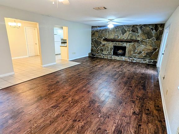 Freshly painted three-bedroom, two bathroom home, with spacious living room complete with a wood-burning fireplace, dining room, kitchen with closet pantry, master suite with generously sized walk in closet, large backyard with patio, and a two car garage with laundry hookups and a garage door opener. Tile and laminate flooring throughout home; no carpet! No HOA! Home available immediately. One small pet accepted with a $400 pet deposit. 12-month lease. Tenant is responsible for lawn care and all utilities.