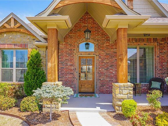 Better than new Landmark Custom in Carrington Lakes. This one owner home is barely lived in and features 4 beds, 2.5 baths, separate study, large open living room, kitchen with double island, media room and more! You will love the quartz and granite surfaces, stainless appliances, upgraded fixtures, wood flooring and designer paint choices. The massive master suite is separate from the secondary bedrooms. Beautiful flowing plan with dining areas, large covered East facing patio and garage storm shelter. One level home! Carrington is a wonderful community with multiple green spaces, lakes, walking paths, pavilions, sport fields and two pools. Call today for your personal tour.