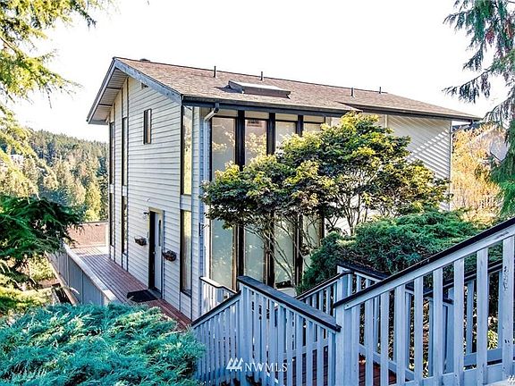 Beautiful views of the sound & Cascades from your deck! Lovely 2 story home with finished basement. 2nd Story is a loft style master suite with private bath. Main level features include large picture windows letting in lots of natural light. Vaulted ceiling & wood burning stove makes this space great to enjoy sunsets & entertain. Spacious kitchen w/dining area. Lower level has 2 bedrooms & a bath. Skyline amenities include community beach, club house and access to Washington Park.