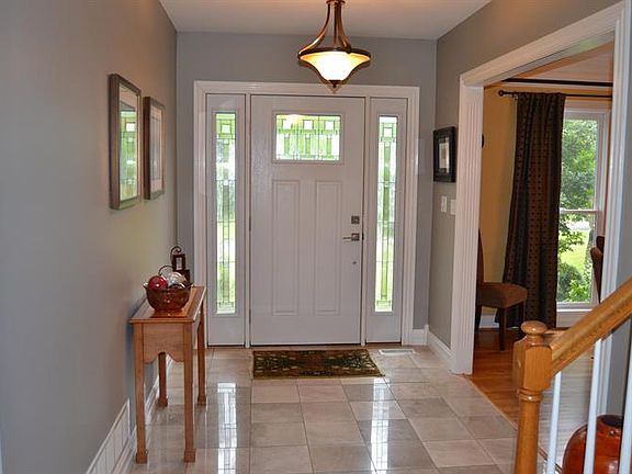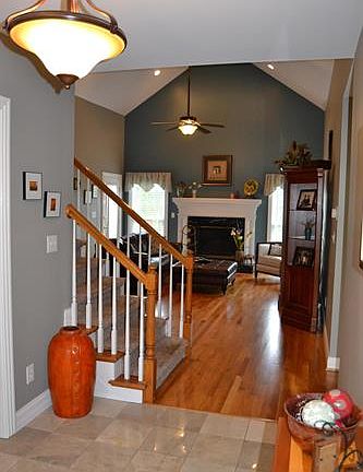 Great layout in this 4-bedroom, 3.5 bath, 1.5 story home located in North Ridge Farms in Crestwood. Entrance foyer with marble tile. Large family room with cathedral ceiling, fireplace with marble surround, and hardwood flooring. Huge eat-in kitchen with cherry cabinets, granite countertops, stainless steel appliances, pantry, desk, and hardwood flooring. Sliding doors lead to back deck. Laundry room with utility sink off the kitchen. Beautiful dining room with updated lighting and hardwood floors. Master bedroom on the first-floor features cathedral ceiling and double window with half-moon top. Master bathroom with double sinks, whirlpool tub, shower, water closet, and walk-in closet. Detailed trim work throughout the home. Upstairs are three large bedrooms. One bedroom with two closets.