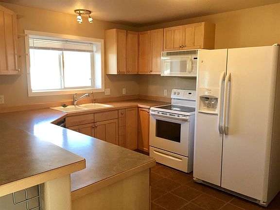 One level rancher with: new flooring, appliances, cabinets, newer roof, windows, tile floors, new baths, pantry, heated garage, plus a heated additional 728 sf garage, sprinklers, covered patio, and fenced rear yard. Home looks new inside and shows pride in ownership.