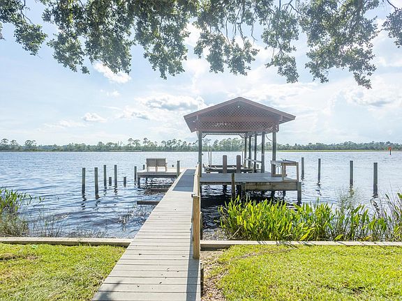 Stunning waterfront, custom home with pool, boat dock and enclosure. A fabulously well designed floorplan, built by well known architect Brian Spencer. Amazing sunset views from all rooms and a very oversized private lot (1.10 acre) location. Well built quality home with so many recent updates with three car parking. Among some of the details are smooth ceilings with beautiful crown molding, new tile & bamboo flooring. The entrance has a tile encased arched door and custom mosaic floor in the foyer adjacent the office. There is also a formal living room and grand open great room' or you could use the formal living area as a library. The Kitchen is located in the center of home with a gas cooktop & island with new recently added granite. The kitchen also features an oversized stainless steel Subzero freezer, gas cooking, wine cooler and lots of cabinets and a large pantry. Huge laundry with added storage off the kitchen. The home has 4 or 5 bedrooms, with an abundance of storage and a gym (work out room). Master suite is located on the first living level and is a split design, with a spacious bathroom, new soaking tub, two large his and hers separate closets, each with built ins & a separate sleeping room or nursery. Home has views from all the rooms, privately situated on a quiet street and over 180 feet of waterfrontage with sweeping views. All windows are impact glass. Beautiful veranda by pool with enclosure and dock built on over sized, private lot. Dock is located in deep water up to 12ft and home is water front on Blackwater River. Owner recently added a pavered driveway. Updated HVAC, tankless water heater, and termite bond.