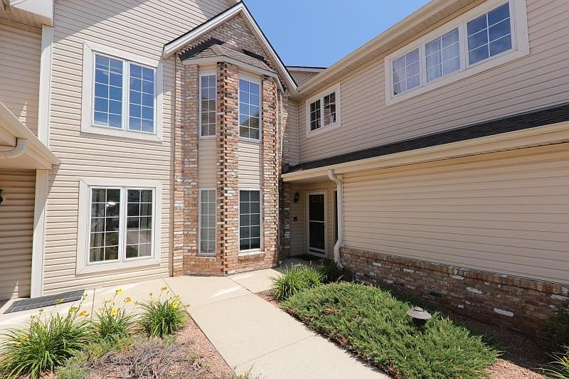 Beloit Meadows Main floor unit. Open concept interior with in unit laundry and 2 car tandem garage. 2 Bedrooms with 2 full baths. Master Bedroom is huge with a Walk-In Closet. Eat in kitchen with snack bar. Formal dining area off living room. Living room with gas fireplace and patio door leading to concrete patio overlooking nice sized green space. New furnace in 2019.