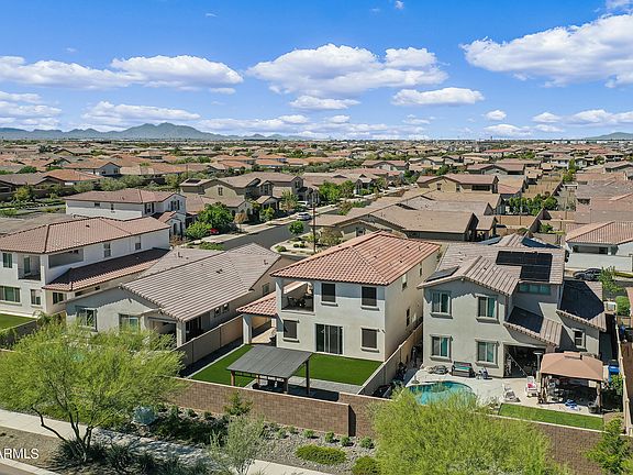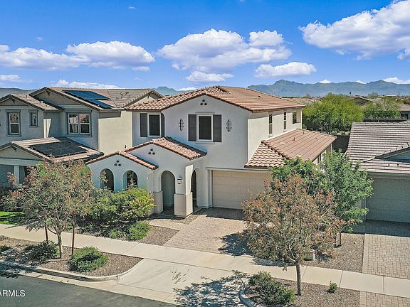 Eastmark with lots of amenities!! Parks and playgrounds just seconds walking from the front door! Great access to local freeways and the home is only a few years old with an awesome floor plan that includes an en-suite on the main level with a separate den, bonus room on the second level with three bedrooms and two bathrooms upstairs, including a private balcony off the master bedroom! The rear yard has new artificial grass with NEW gazebo including pavers. Kitchen has white cabinets with granite countertops and all appliances included. The whole house water system with UV light & Control 4 automation systems are upgrades to the home! Garage storage cabinets and washer/dryer included! Remodel completed by licensed contractors!