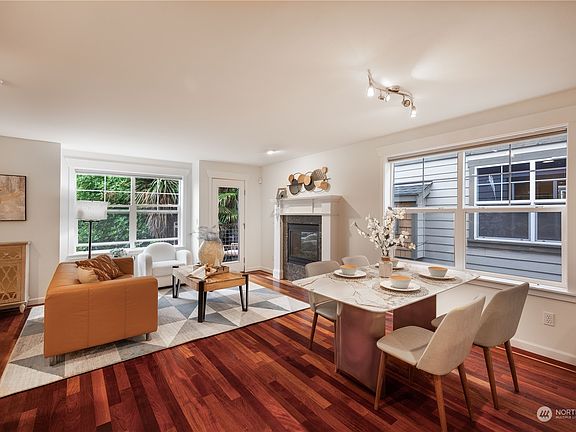 Stunning townhome, ideally situated in the excellent location of Fremont. The main level boasts an inviting open-concept living space, w/ a gourmet kitchen, SS appliances, Large windows, a cozy fireplace & patio. Upstairs you'll find two spacious bedrooms, both featuring vaulted ceilings & walk-in closets. Lower level has an extra room w/ bath, either an office or bedroom, ensuring versatility and convenience. Oversized 1-car garage. Expansive fully fenced backyard sets this property apart - a delightful oasis for outdoor gatherings, BBQ and relaxation. Well-maintained end-unit, No HOA, neat & quiet complex with walking distance to Woodland Park, coffee, bakeries, shops, restaurants and minutes to Greenlake, DT, SLU, UW etc.