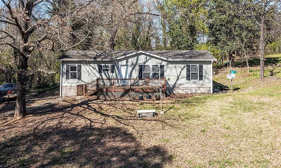 Less than 3 miles (or a 5 minute drive!!) to downtown Woodstock, this 2014 Modular home is situated on 1.5 acres directly across the street from Mill Creek Middle School and River Ridge High School! This three bedroom, two bath home has a PRIME location with easy access to I-575 and Hwy 92. The home boasts stained kitchen cabinets and plenty of counter space. The master bath has double vanities, a separate shower, and a soaking tub. Tired of being right on top of your neighbors? This land allows for the privacy you need! You can subdivide and build or move right in. Chickens? You've got it, and the coop is already there. Ready for home grown tomatoes? Plenty of room to garden! in addition to the home, there are two separate outbuildings that can be used for storage or a workshop! Only 11 miles to downtown Roswell and 12 miles to Alpharetta.