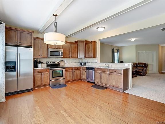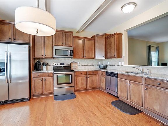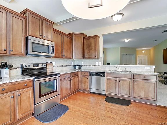 Harpers Green. Spacious End unit with a one car garage. 3 bedrooms, open kitchen area with stainless appliances, tile backsplash and granite counter tops. Wood flooring in kitchen, dining, foyer and office and half bathroom. Master suite features double sinks, garden tub, walk in closet. Convenient to grocery, restaurants and shopping.