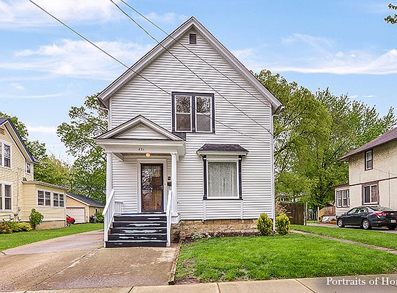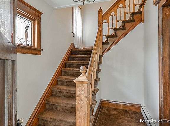 Well maintained family home on the west side of Aurora. Beautiful original woodwork throughout and gorgeous hardwood floors under carpets. Original lead glass windows, restored banister and railings on stairway. Updated kitchen and big formal dining room and living room. 4 bedrooms plus bonus room on 2nd floor, bedroom with powder room on main level and full bath in basement. In historical District. Estate, As Is home. No FHA or VA.