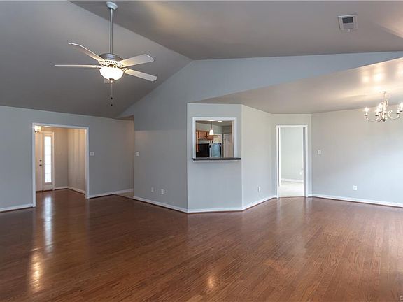 Welcome to your new home in the quiet neighborhood of Berkeley Estates. This beautiful rancher was freshly painted throughout, has all new carpeting, and the exterior was power washed. Enter through your newly painted front porch overlooking your landscaped front yard and bird bath for observing the native birds. As you enter your foyer, notice the newly painted walls and beautiful hardwood floors as the room opens up onto your spacious open concept living and dining room featuring cathedral ceiling, kitchen pass-thru, and french doors opening onto your back patio. This grand open space is perfect for entertaining! Your kitchen boasts lots of cabinet storage, all black appliances, pantry, and a cozy dining nook with windows overlooking the large backyard. Down the hall, find your Master Suite featuring tray ceilings, ceiling fan, double walk-in closets, ensuite bath with double vanity, garden tub, and separate shower. You'll find 2 additional bedrooms for your family or guests, a full hall bathroom, laundry room with washer & dryer included, and a 4th large bedroom with private entry. Great location with quick access to I95, Hwy 460, local shopping and dining.