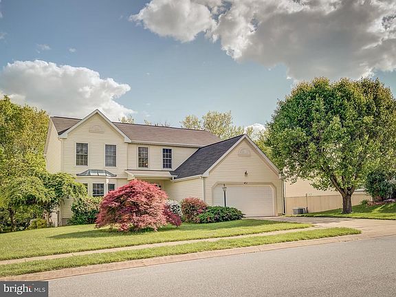 Colonial with covered front porch and a grand two story foyer, Ryland homes Hamilton model. Smooth entry from the 2 car attached garage into separate dining room and into kitchen. Private side entry door from deck or outside into mud room with a washer, dryer, laundry cabinets and a powder room with a window as well as exhaust. Kitchen has all appliances, lots of wood cabinets and two good size windows for your pleasure. Large breakfast area for your routine day to day use. Family room has a remote controlled fan and french doors to deck. Enjoy this large deck . Large living room in the front corner is away from the dining room. Upper level has hallway for your use. Master bedroom with cathedral ceiling and two side windows for natural light to shine in. There is a remote controlled fan for summer enjoyment. Two walk in closets for your wardrobe. Double doors to master bath. Enjoy the Jacuzzi tub with jets. Side and corner windows for all that natural light. There three additional bedrooms, one in the back middle and other two in front and back corner. All with windows for light to shine in. All three bedrooms have fan/light fixtures for your use. There is a walk out basement with rec room and an office room. Home is centrally heated and air conditioned with a new heat pump installed last year ( 10/2020 ). Hot Water heater was installed two years ago (07/2019 ) and a new roof was installed recently 04/2017.There is a fresh coat of paint thru out. Seller has HOA resale package available on request. Pre listing appraisal completed in the currant condition. Seller is offering buyers a limited one year home warranty from HMS/ CINCH. Welcome home