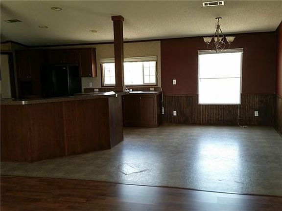 Mobile Home on about 2 acres in Rhome with a covered back patio. 3 Bedrooms, 2Bath with a study nook off from the kitchen.