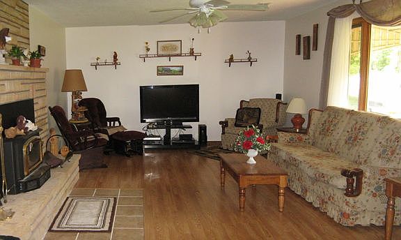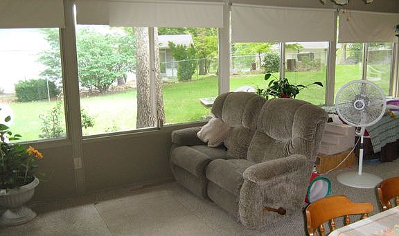 Home on corner lot in park-like setting near lake, river, golf course. New roofing, new electric surface top range with built in microwave, sink fixtures, resurfacing of counter tops, tile, & sink, new laminate flooring in living room, dining area, and kitchen in 2012. Newer heat pump, DW, and refrigerator; instant hot water system; extra large 4 season sun room with wood deck and concrete patio. Chain link fencing; storage shed is a play house. Room off garage 8' x 11' for storage or workshop.