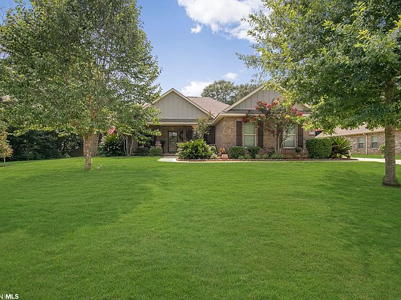 Wonderful home in Fairhope's Copper Key. Well cared for with plenty of privacy on nearly 1/2 acre lot. Open floorplan with 3 Bedrooms, 2 Baths, Office/Study, Screened Porch. Large Primary suite includes tray ceiling, custom tiled shower, dual vanity space with lots of storage, separate water closet, linen closet and huge walk-in closet. Kitchen has granite counters, Island, breakfast bar seating, lots of cabinets, pantry, and includes new refrigerator purchased May 2023. Features include high ceilings | split bedroom plan | new dishwasher 2022 | Separate Dining Room | Breakfast Room | Beautiful Front Porch | Fire Pit area | Fruit Trees | Fenced backyard | Storage Shed | Ring Doorbell | 3 Wall Mounted TVs | new Storm Door on Front | fresh landscaping. Boats can be parked behind fence if not visible! HOA only $250/ year.