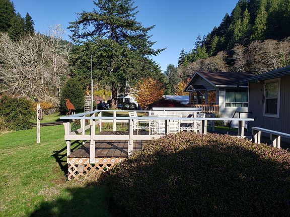 This is the view of the Alsea river from your boat dock. their is a boat house also. It is an Ideal place for some one who loves to fish, paint or just watch the wild life on the river. The beach is just 10 minuets away and in Waldport there are shops and antiques The house has 1bedroom and a bunk room. an eat in kitchen and a breakfast bar. It comes with all appliances and is partially furnished. their is a deck overlooking the river for sunny days and a large covered porch for rainy days. It is a must see to appreciate.