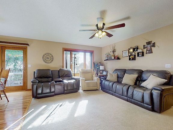 This move-in ready ranch is located in a family-friendly neighborhood, on a quiet street, close to Riverside Elementary School and 20 min from Iowa City/Coralville. The main level has carpet, hardwood and tile floors, and features central vac. Also on the main level are 2 bedrooms, a full bath and laundry. The kitchen features hardwood floors, laminate counters, stainless steel appliances and breakfast bar. Appliances stay with the home. The primary bedroom is located on the main floor and includes a walk-in closet. The partially finished lower level features 2 bedrooms, full bath, extra living room or office and storage area. Outside you'll find a treated wood deck, front porch with a swing and patio overlooking the large fenced in backyard with mature trees. Garden shed can stay if buyers want. New kitchen sink, light fixtures, tamper resistant outlets on main level, new carpet in several bedrooms, and garage door serviced and spring replaced in 2022. Property Improvements: - A/C - 2018 - Carpet - 2020 - Basement Finish - 2020