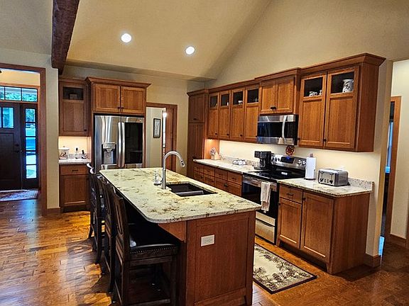 This home features vaulted ceilings, an open kitchen, a stone fireplace in the great room, and a cozy fireplace in the sunroom. It also includes a 3-car garage and a spacious upstairs bonus room. Outside, you will find a concrete patio, stone paths, a garden shed, a fire pit, and beautiful woods and landscaping. The Europe Lake boat launch is less than 400 feet away, and access to Newport State Park is at the end of the road.