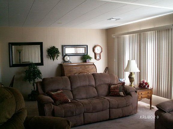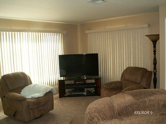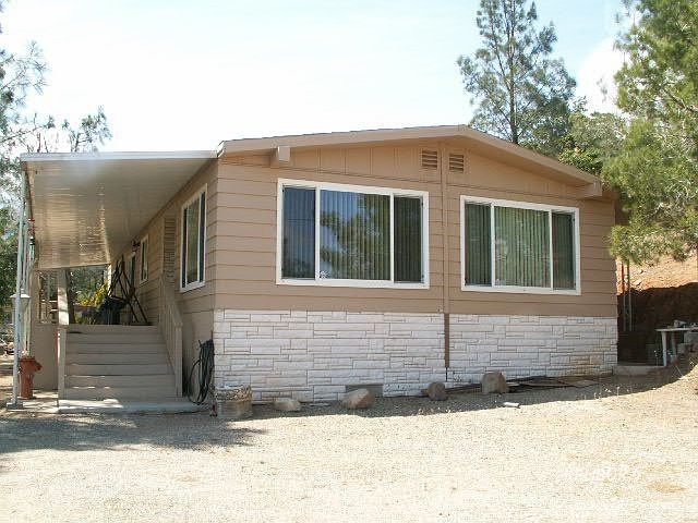 Mobile home has been renovated with upgraded counters, dual pane windows, new cook top, built in oven & bathroom vanities. Large living room with wood stove, built in hutch in dining area. Den off kitchen with slider to the big deck overlooking Tillie Creek & the surrounding mountains. 2 bedrooms, 1.75 baths on about 1/3 of acre & Air conditioning. Lots of shade trees on the property.