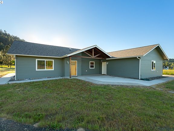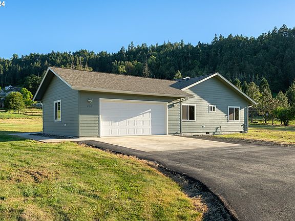 Discover this stunning custom-built single-level home, completed in March 2018, situated on 2 flat and usable fenced acres in the serene countryside of the desirable Melrose area. This property offers the perfect blend of modern luxury and rural tranquility, all with no HOA restrictions. The home features solid hardwood doors, exquisite bamboo flooring from Cali Bamboo, elegant granite countertops, tile flooring, and natural sun tunnel lighting. The kitchen is equipped with high-end stainless steel appliances, a beautiful island, and plenty of storage. Enjoy the spacious open-concept layout with vaulted ceilings, enhancing the sense of space and light. The primary suite is a true retreat, featuring a large walk-in closet, custom walk-in tiled shower, and french doors leading to your large covered patio with peaceful views of the mountains as you step outside. The living room also has french doors leading to this peaceful outdoor extension of living space. Built with trusses and framing from Empire Wood Products of Coos Bay, OR, this home ensures durability and quality craftsmanship. The property is also equipped with an Advantex Septic system from Orenco Systems. The home features geothermal heating, providing energy-efficient comfort year-round. Additionally, there is a convenient two-car garage offering ample storage and parking space. The expansive 2-acre lot offers plenty of room to build a shop or additional structures to suit your needs. Located close to Bar Run Golf Resort and just minutes from Roseburg, this property combines the peace of country living with convenient access to amenities and recreation. Don?t miss this rare opportunity to own a quality-built home in a picturesque setting. Schedule your private tour today and make this beautiful Melrose property your new home!