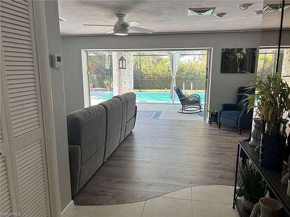 IDEAL LOCATION. 3.3 miles to the beach. No HOA, no rental restrictions ideally located West of I-75 in North Naples. Home has undergone major renovations including new roof 2019, pool enclosure 2020, completely remodeled in 2022 with new paint in and out, new pool pump and filter system, hot water heater, new flooring, new appliances, ceiling fans, updated kitchen, bath and laundry, epoxy garage flooring, added closet space. New vinyl fence with 10' gate. Still room to add significant additional value. Agent is related to owner