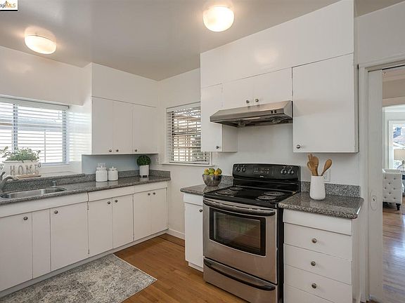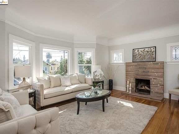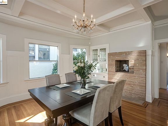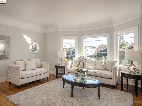 Spacious Craftsman home features original period details such as perimeter inlaid hardwood floors, beveled glass windows, gorgeous box beam & 9 ft. cove ceilings. Rooms galore in full finished 1,423 sq ft basement for lots of storage. Plus room/den/office upstairs. 2 fireplaces, granite kitchen counter & new bath tile flooring. Interior staircase and separate basement entry door. Long driveway for parking. Open House 9/28 & 9/29 Noon to 5pm. Tall attic. County assessor's records recently increased "Building Area" to 2,988 sq ft and added upstairs half bath. County Assessor records show 5 BR, 2.5 BA, 2 stories and city permit history shows 1 story. Public records differ. Accuracy of description including, but not limited to, #BR, #BA, stories, sq ft, room count is not verified or guaranteed by sellers or agents. Easy access to ferries, AC transit, shopping, restaurants, schools and beach.