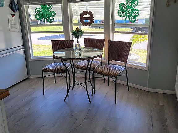 Fully renovated with new insulated windows, paint and vinyl flooring. Partially furnished on landscaped corner lot with irrigation. Enclosed florida room, attached laundry. 9 x 13 shed with electric. 55+ community