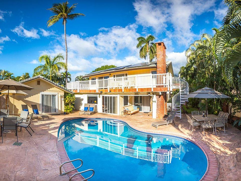 Walk 1 block to the beach and 2 blocks into Lahaina Town. House powered by solar so owner pays for electricity. Pool, BBQ, AC, W/D, the child-friendly home also has beach chairs, beach towels, boogie boards, bikes, coolers, and sand toys. 2 covered parking spaces inside the locked gate. Located in a quiet neighborhood across Front street from a beautiful sandy beach where you can swim, snorkel, beach comb, relax on the shore or under a shade tree. Kayak, paddleboard, bodyboard or surf at world-class surf spots. See the amazing islands of Lanai, Molokai, and Kaho'olawe. No pets Our spacious home features: *Central air conditioning keeps you cool * Solar system, electricity is free * High vaulted ceilings make it seem like a palace * Gourmet kitchen and dining room with seating for 8 * Luxury furnishings and professional interior decorating * 55 HDTV with surround sound stereo and Blu-ray Netflix DVD player * Time Warner HDTV w/premium channels * Free Wi-Fi Home stereo system with built-in speakers, * 42 HDTVs in the master bedroom and guest bedroom * High-end Sealy Posturepedic Cal King size mattresses * Luxury sheets towels and pillows * Monnier white tile throughout * Beautiful ocean and Maui mountain views. Stunning sunsets from the upper lanai. * Secure carport covered parking in a gated compound for two Large vehicles. * The gated private and quiet grounds are enhanced by many varieties of tropical flowers, palm trees, fruit-bearing mango papaya, and banana trees. * A large private ocean-blue bottom salt-water swimming pool is easy on the skin and 14 feet at the deep end. * We supply beach chairs, coolers, beach towels, SUP board, surfboards, beach chairs, misc. beach and sand toys Owner pays for electric, water, weekly garbage pick-up, weekly landscaping, weekly pool maintenance. Available on a monthly basis starting 4/15. STWM T2017/0015 Month to month Owner pays water, landscaping, trash, electric, pool