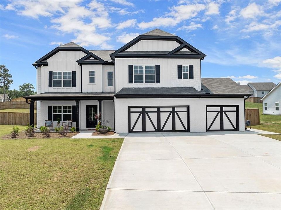 THIS HOME COMES WITH A ONE-YEAR LENDER-PAID INTEREST RATE BUYDOWN W USE OF PREFERRED LENDER. Luxury Meets Comfort. Welcome to your Modern Farmhouse. Nestled in a private neighborhood known for its estate-sized lots and tranquil setting, this stunning, one-year-old home offers the perfect blend of modern luxuries and charm. Loaded with high-end upgrades, every inch of this property has been thoughtfully designed with quality and convenience in mind. The neutral colors and ample natural light make this home light, bright, airy, and ready for you to make it your own. Enjoy serene reservoir views from the front porch and a fenced backyard ideal for entertaining, a pool, pets, or simply relaxing in peace. Inside, the upgrades shine—from the Wexford shaker painted cabinetry to the level 5 stainless appliance package featuring a chimney vent hood, cooktop, wall oven/microwave combo, A white ceramic farmhouse sink anchors the chef’s kitchen, complete with quartz countertops, a herringbone tile backsplash, and a spacious butler’s pantry perfect for extra storage and your coffee bar! Your two-story foyer leads to the inviting family room featuring upgraded laminate flooring and a cozy brick hearth fireplace with a cedar mantle and built-ins on each side. A bar pull hardware package, pendant lights, and an upgraded lighting package add the perfect designer touch throughout. Retreat to a luxurious primary suite with an enlarged, frameless glass tile shower, upgraded tile flooring, and no tub for a spa-like feel. Did I mention there are TWO oversized closets in the primary suite- one built out for optimal organization. Additional highlights include hardwood stairs, open iron spindles, 2" blinds throughout and more! This home is as functional as it is beautiful with one of the best features being a bedroom and full bathroom on the main floor. With thoughtful extras like a pot filler, soft-close cabinets and drawers, and a dog wash station with hot/cold water plumbed and a drain in the garage, this home is sure to impress. Other upgrades include exterior door in third car, extended patio and walkway, 13 additional outlets for garage, tv mounts throughout, and extra floodlights. Seconds to schools (zoned for the new Heros elementary) , shopping on 124 and Traditions of Braselton.