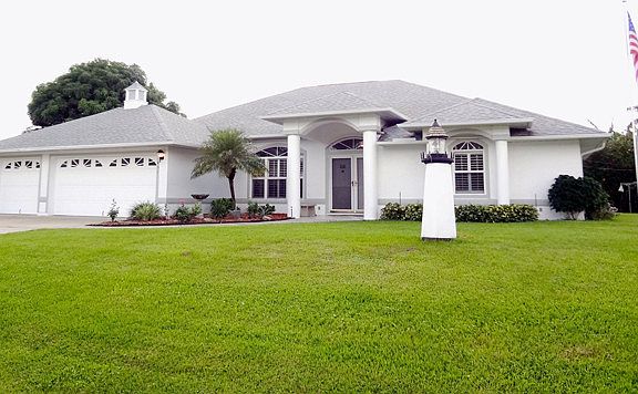 RARE FIND!!!! POOL HOME WITH 3CAR GARAGE ON A DOUBLE LOT CUSTOMIZED AMERON Sanibel MODEL-3BED 2BATH 3CAR GARAGE w/Salt Water, Solar Heater, Screened Pool on a Dbl Lot. Extended Screened Porch & Patio. 3Pocket Sliders plus 4th Slider off Guest. Kitchen w/Breakfast Bar,Nook,Island,Granite Counters & Stainless Appliances. Formal Dining w/Built In Wall Unit. MB Garden Tub, Shower, Dual Sinks & His/Hers Walk In Closets. Warranty & Many EXTRAS!!! CALL Cuco Santana 772.538.8384 or Vicky Santana 772.538.8383